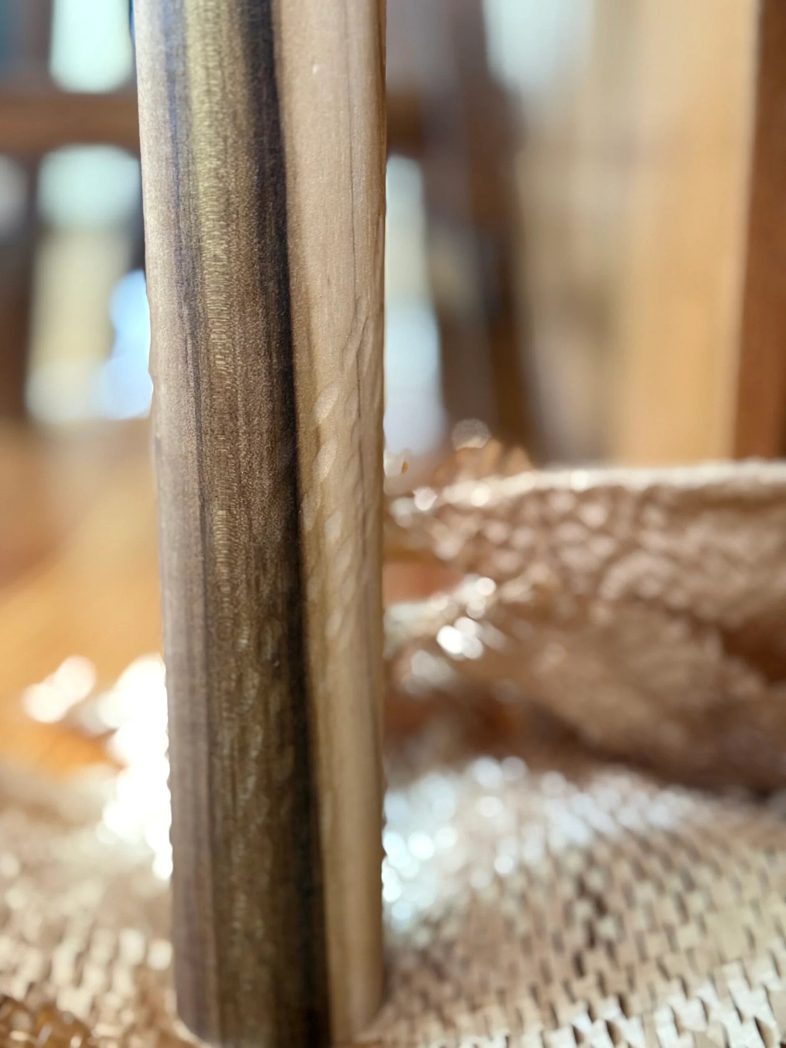 Rooted in nature, sculpted by hand—the Mori Table is a bold statement piece that brings the quiet strength of the forest into your home. Crafted from rich, live edge walnut, joined with wedged round mortise and tenon. Its surface follows the natural grain and contours of the tree, making each table truly one of a kind. The hand-carved legs offer more than support—they are a continuation of the organic form, merging structure with art. Designed to anchor a room with warmth and presence, the Mori Table is both functional and deeply expressive. A piece made to gather around, and to last for generations.